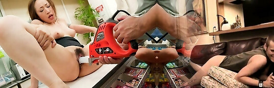 Sexy teen cums on big fuck stick poke machine then squirts cum from ass