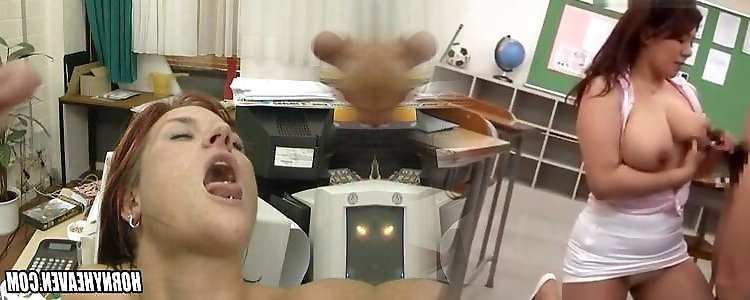 Steaming assistant gets ravaged by two schlongs and receives a dual load on her face