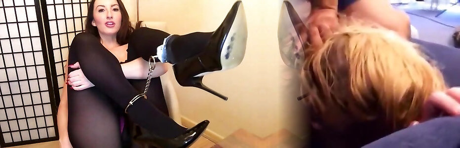 Super-steamy Dark Haired Teases You With Her Stocking Feet and Handcuffs