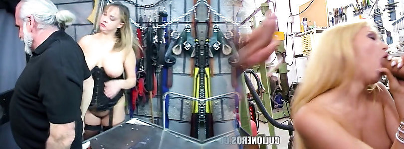 Huge-chested slave sucks her sir&039;s manstick in the torment bedroom