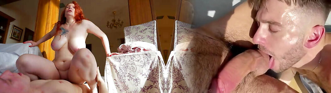 Red-haired Cougar Lia Shayde takes all the jizm in her throat