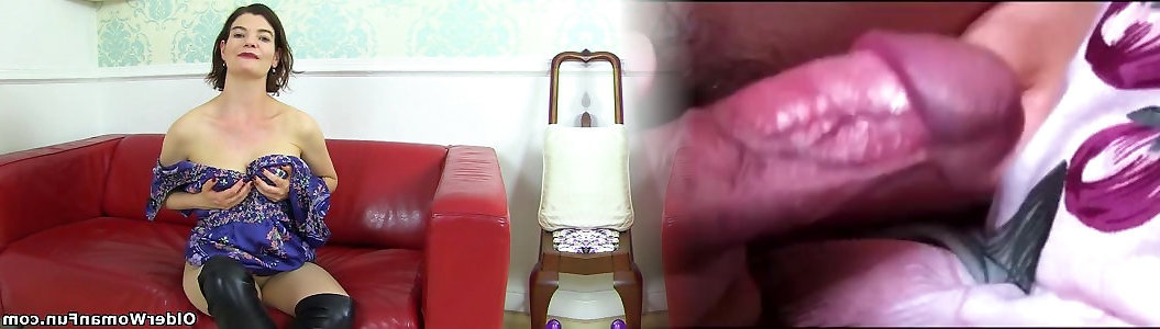 Clit rubbing elderly woman in high stilettos has joy with a fuck stick