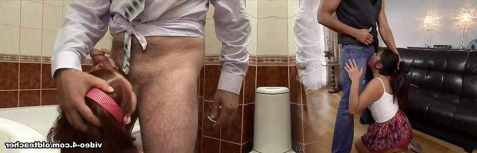Messy aged man gets his giant trouser snake inhaled by red-hot childminder then romps