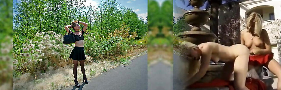 Longpussy, out for a walk, Giant Twat Buttplug, Sheer Top, High High-heeled Shoes, Hip Highs and a Short Skirt in Public!