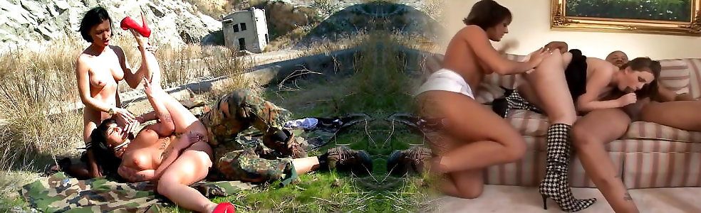 Horny damsels get nailed outdoors by a soldier – gonzo