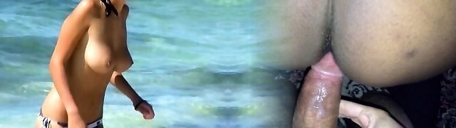 Quicky in a public beach with amazing mexican teenage and her bubble butt