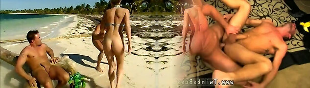 White beefcake stud ass pummels giant assed mulatto babe in sideways pose on the beach