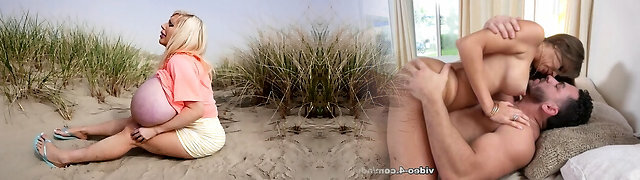 Provocative platinum-blonde chick experiences the double shagging on the beach