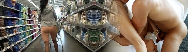 Cameltoe and showing in a supermarket