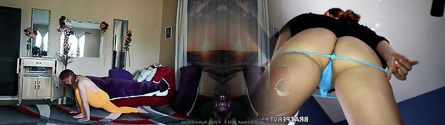 Danielle Trixie exercises in a rosy mesh micro panty for cameltoe views