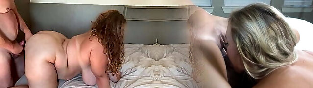 BBW DP Gonzo lady fucked in hotel Threeway by fortunate guys