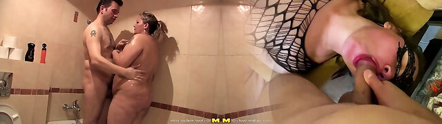 Thick Backside Step Mom Asked Him To Massage Her Chubby Body Instead She Started Sucking His Cock Creampie