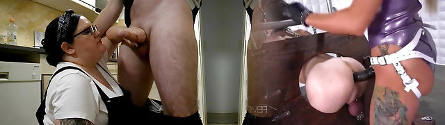 Jaw-dropping Cougar Is In The Toilet With Huge Cock And She Must Suck It
