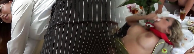 !!! Slutty Platinum-blonde Boss Empties The Staff Sack Of Babymakers Before Leaving The Office !!! - English Subtitles