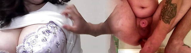 BBW having fun with his cock and her Vibrator.