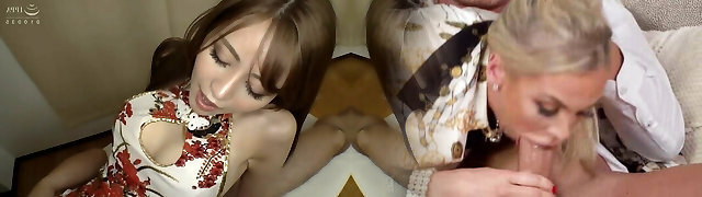 Erotic brunette stunner sucks busty blonde's nipples