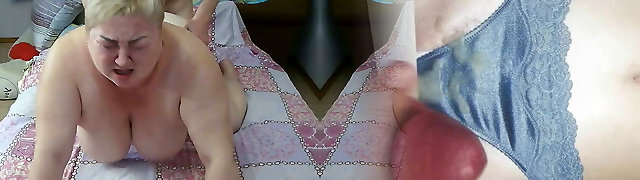 An ugly white blonde BBW mature woman on the bed undresses on cam