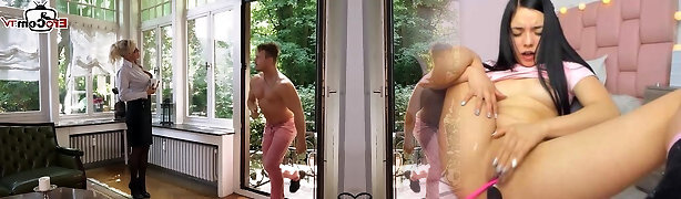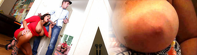 The Carpet fitters measure up Big-chested Cookie for a superb fucking