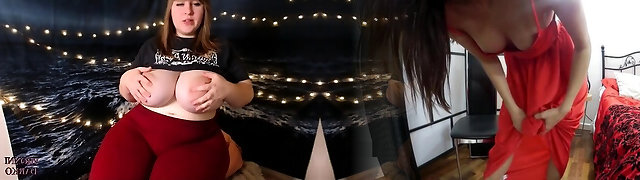 Titjob with her big natural milk cans, deep throat, thong pulling and powerful fucking with her big round rump!