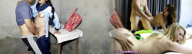 Cute next door teenie tricked to fuck during massage
