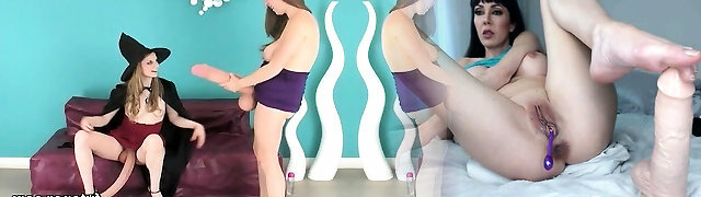 Mischievous girls pulverize the biggest strap-ons and spray load everyw