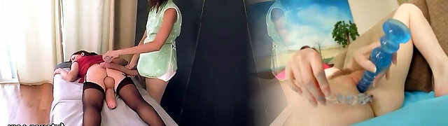 Super-steamy teenies penetrate the biggest strapons and spray spunk a