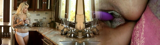 Blonde tight pussy babe solo toy fun in glamour masturbation