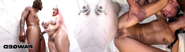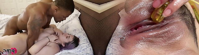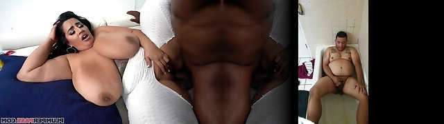 Hot plumpy slut with a fat ass attempts to handle extremely big black dick in her mouth and labia