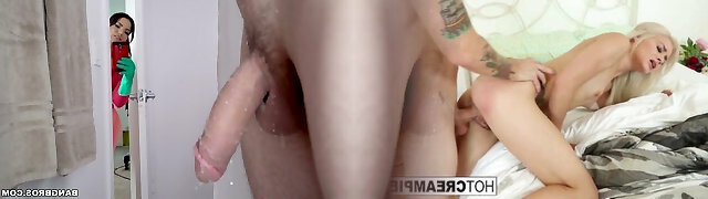 Tall clean-shaved headed stud spies on Rose Monroe and gets Bj from her