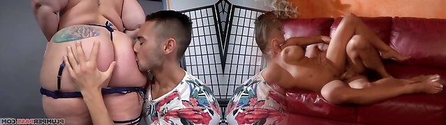 A Group of Naughty Plumpers Have a Super-fucking-hot Orgy with 2 Interracial Men