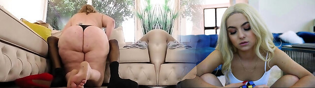 Hard anal punishment for naughty stepmother Plumper and her huge tight ass in ripped leggings