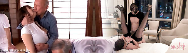 Old folks get stiff to gangbang a huge boobs Japanese slut