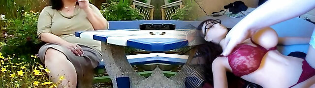 Karla Green and her acquaintance take turns at juggling on a fat dick