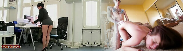 Short mini-skirt secretary loves to be a slut at work