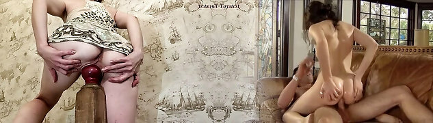 Pearl Bangs Big Dildo with Butt Plug Inserted