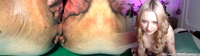 Dirtygardengirl in black fishnet fuck big dildo & ass-fuck prolapse