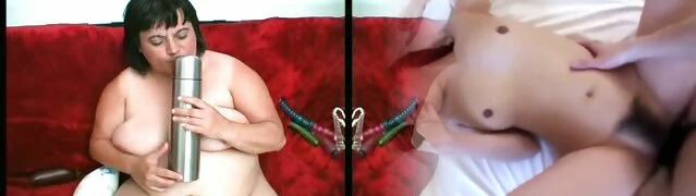 fat lady milf inserts underpants into her pregnant girlfriend's big hairy puss
