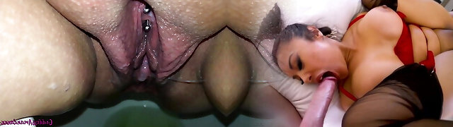 POV creamy pussy dripping into his mouth. Wet slit eating