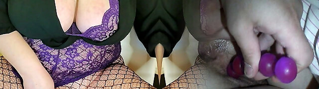 Pussy Pumping and Play in Purple Lingerie - Chubby Big Tits Milf Brunette Fingering Mistress X Gina