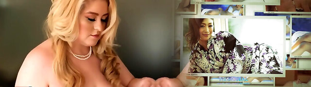 Busty platinum-blonde Babe in lingerie and fishnet stockings