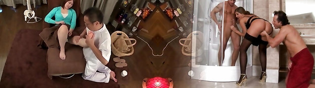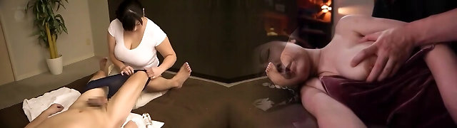 Hot Japanese masseur gives a titjob and gets nailed balls deep