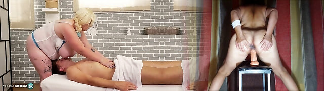 Tight Arse Brunette Drains Lucky Massage Therapists Big Cock