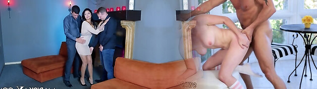 Asiatische Schulmaedchen haben Spass beim gruppensex mit Crampies