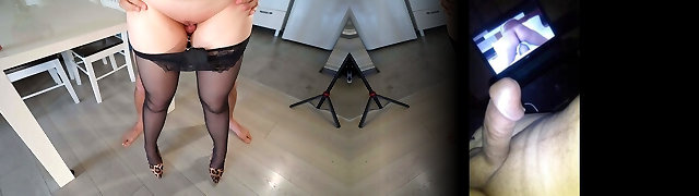 Curvy jerk off lecturer strips to heels nylons for wanking
