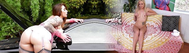 Hot donk blonde Charlie Monaco bends over to tease a naked guy