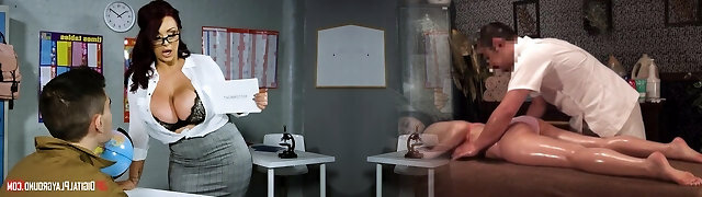 Extravagant teacher with huge bobs Diamond Kitty tempts schoolgirl guy Ryan Mclane