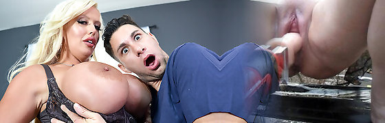 BBW big orbs blonde Lila Lovely visits her Anal Doctor