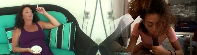 Mature Platinum-blonde Mama Sucks Young Cock While Smoking