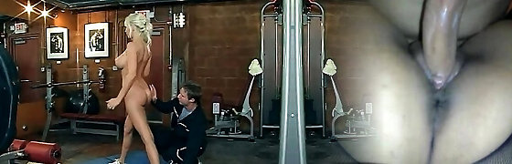 Blonde busty MILF doing her work out naked