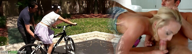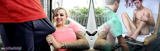 Towheaded teen babe Pressley Carter fucked by her gym body
